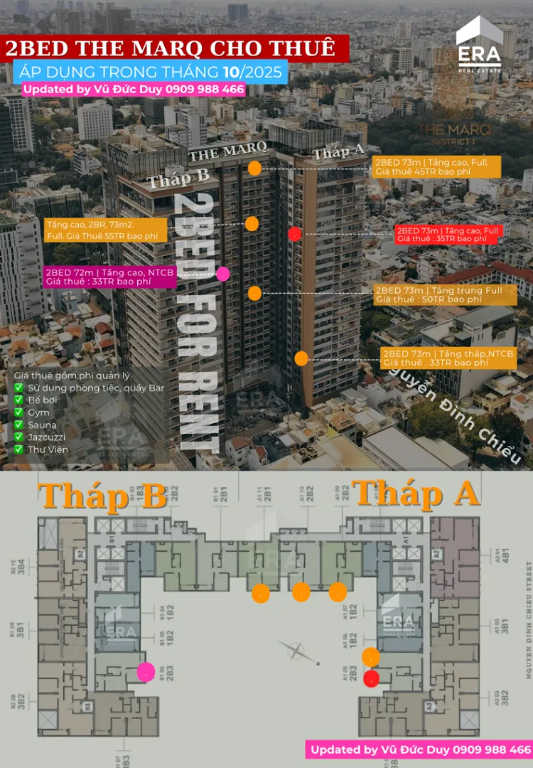 Nếu bạn đang tìm cho thuê 2PN The Marq (hay 2BED The Marq for rent), đây là lúc lý tưởng trong tháng 10/2025 với giá thuê cạnh tranh, cập nhật tươi mới từ Vũ Đức Duy của ERA Real Estate.