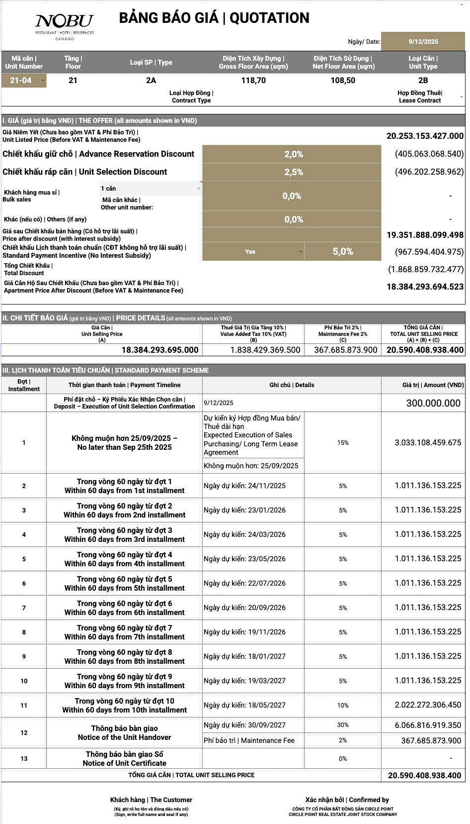 Lịch thanh toán NOBU Giãn 24 tháng (2025 2027):