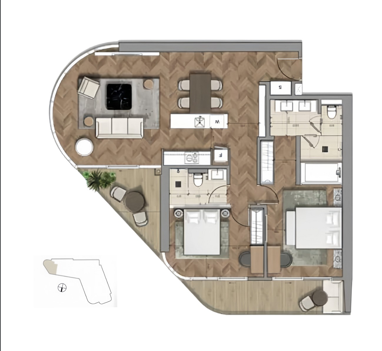 - Diện tích 2PN NOBU: 118m2