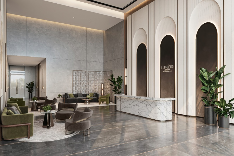 • Sảnh đón trần cao 7m sang trọng chuẩn khách sạn quốc tế