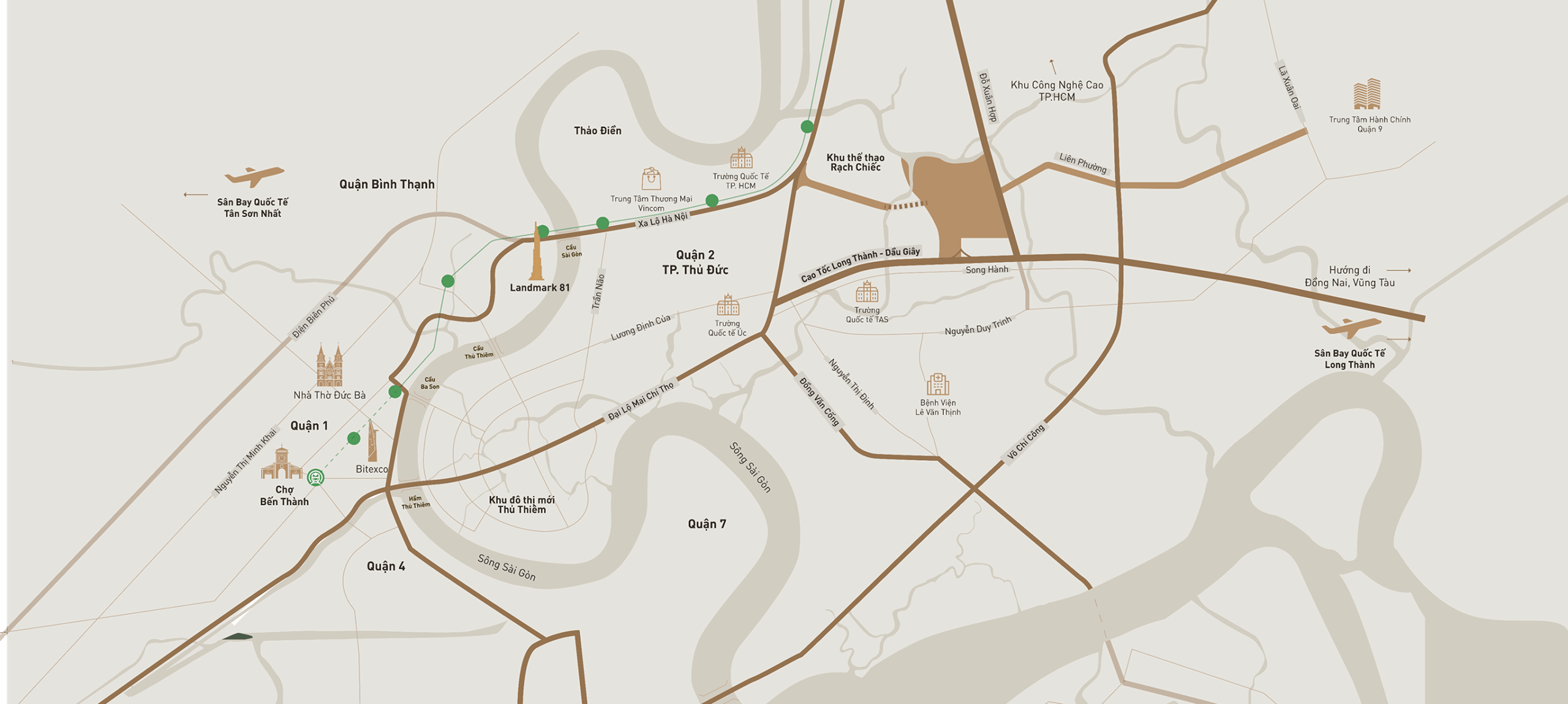 • 20–30 phút đến sân bay quốc tế Tân Sơn Nhất và Long Thành trong tương lai