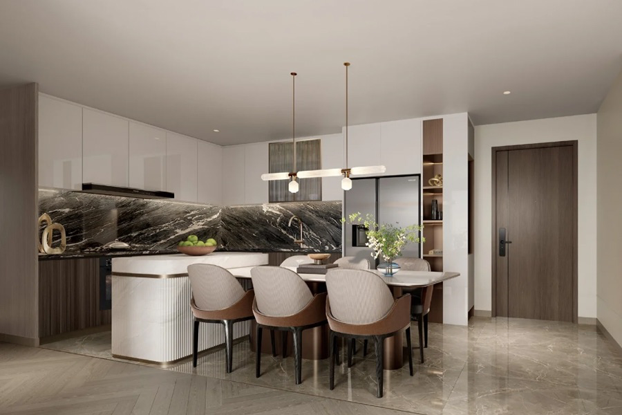 • Phong cách Luxury Contemporary kết hợp triết lý kiến trúc Biophilic, tối đa sự hòa hợp với thiên nhiên
