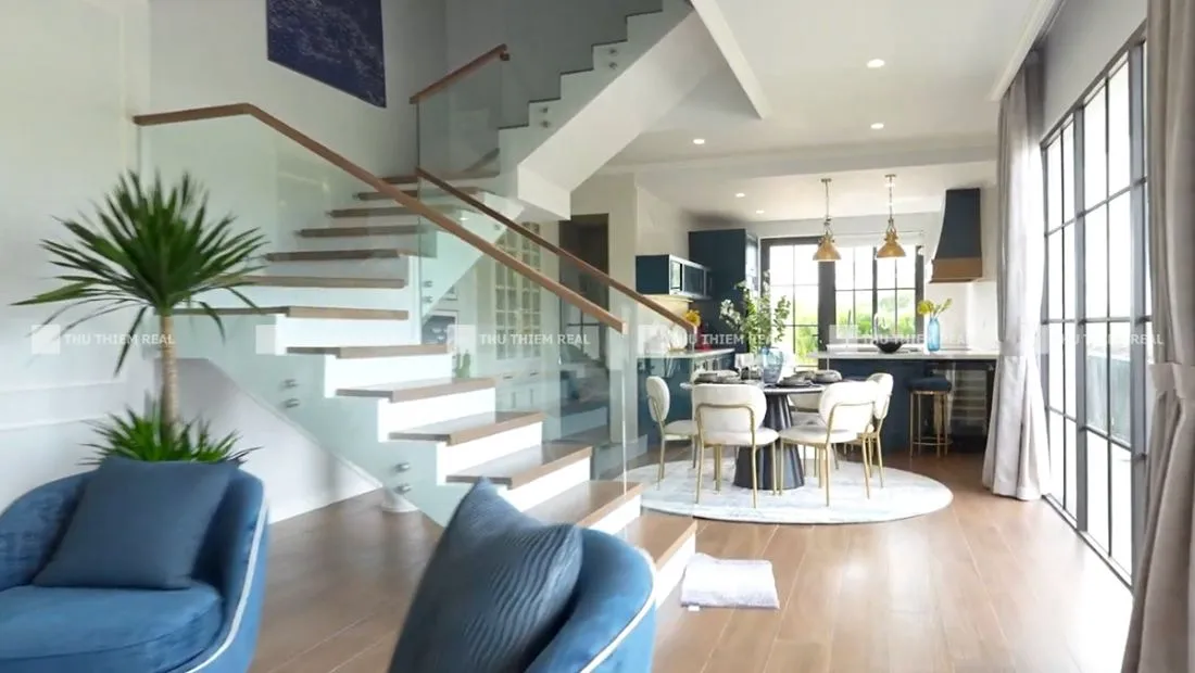 - Tầng trệt: Phòng khách – bếp mở – sân sau, mang lại sự kết nối & thông thoáng